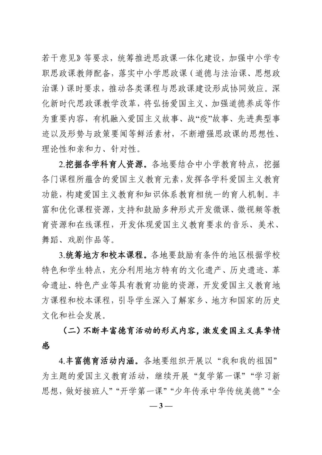 《工作方案》强调,各地教育行政部门要以习近平新时代中国特色社会主义思想为指导,落实立德树人根本任务,坚持爱国和爱党、爱社会主义高度统一,加快构建一体贯穿、循序渐进的爱国主义教育体系,用好抗疫救灾等重大事件形成的教育资源,不断创新途径和载体,强化政府、学校、家庭、社会协同作用,在中小学扎实开展深入、持久、生动的爱国主义教育。