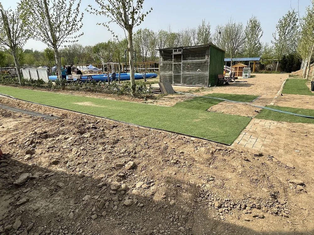 露营地到处是拼接的塑料草坪