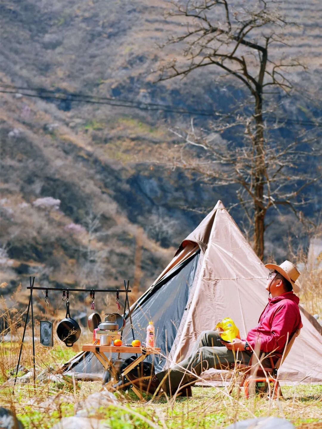 支起天幕,在榉木蛋卷桌上摆好咖啡壶,三五好友围着卡式炉吃顿火锅,身后的帐篷里灯光闪烁……“非必要不出京”的五一假期,到郊区露营注定将成为热门之选。