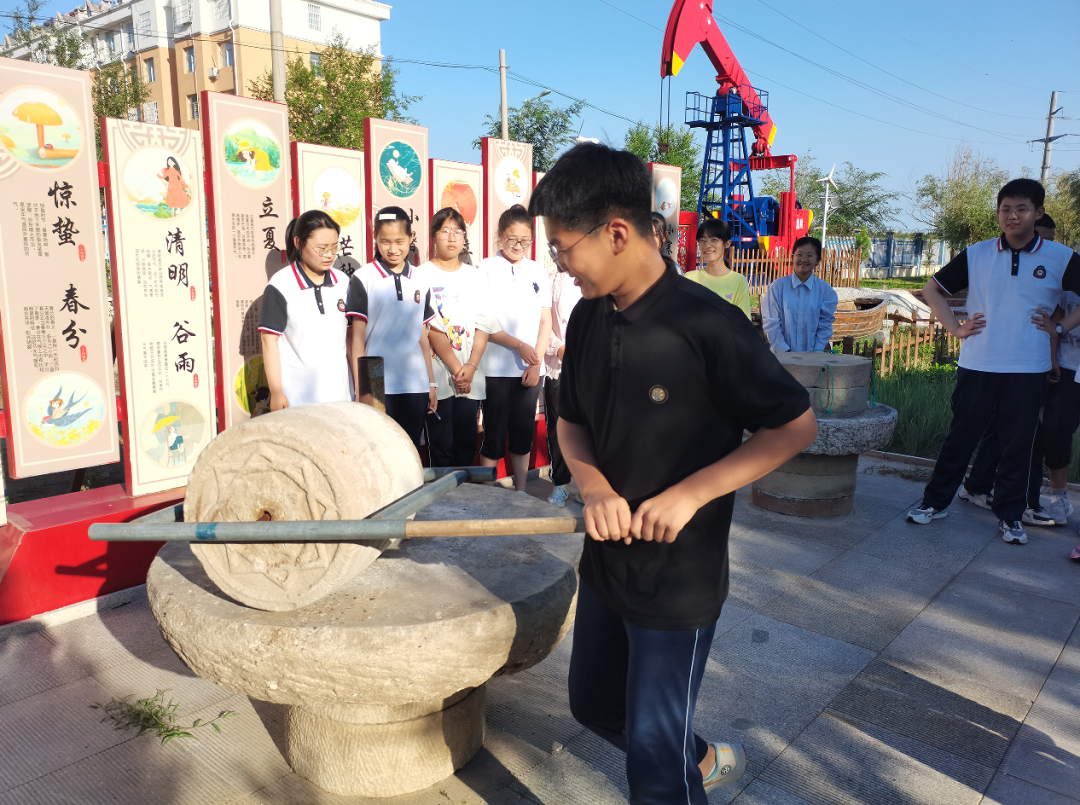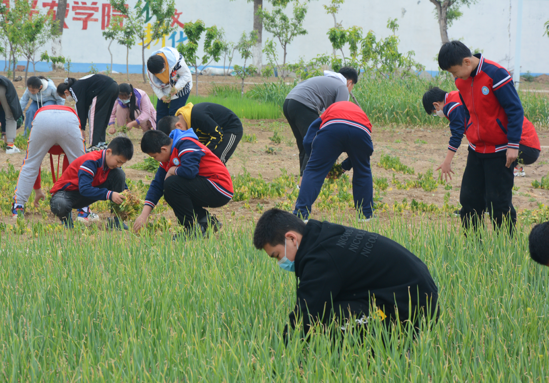 芒种芒种,兼收带种。摘红杏、拔大蒜、种大葱……学生将饱满的红杏从枝头摘下,将成熟的大蒜从地里拔出,将嫩绿的葱苗栽种地下,一边在田间劳作,一边学习农作物的种植知识和功效,在劳动实践中提高动手能力。