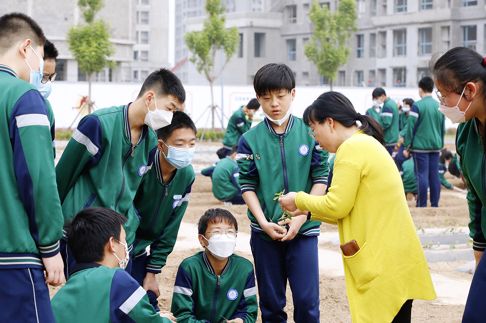 学校开发出以田园体验为主题的特色劳动实践基地,开展特色劳动教育课程,根据学段学生特点,制定劳动清单,把劳动教育融入劳动课程、校内劳动、校外劳动、家务劳动各环节,通过校内特色劳动课程的学习,实现校园、田园、家园、社区四个场域的横向融通。