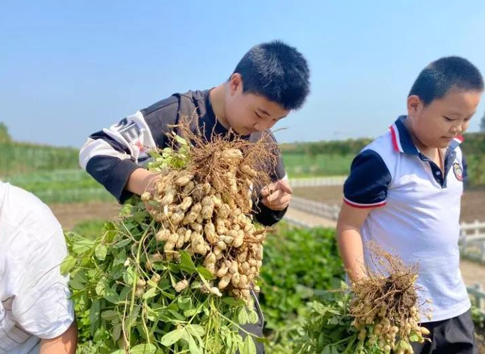 学校把“土地使用权和管理权”交给每个班级,实施“我的土地我管理”,开展“种花生~收花生”“栽地瓜~刨地瓜”“栽莴苣~砍莴苣”“播豆子~摘毛豆”等系列劳动特色活动,真正让学生回归生活,体验劳动的意义和快乐。