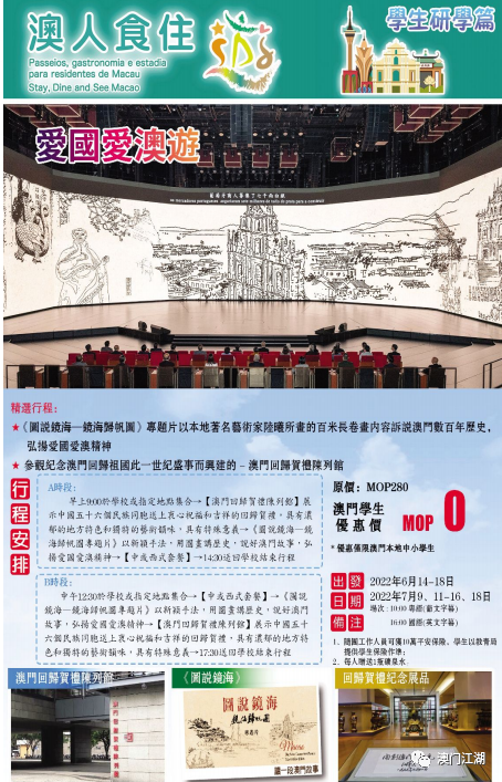澳门立法会颜奕恒议员:内地的研学游早在2014年明确将研学旅行纳入中小学生日常教育范畴,并在2016年家发布《关于推进中小学生研学旅行的意见》,明确提出将研学旅行纳入中小学教育教学计划,发展至今已出现了丰富的研学产品,甚至有的地方建立了研学旅行活动课程体系,而且在多年探索中不断完善。我认为澳门政府应该多推动旅游业界、教育业界共同合作,参考内地研学旅行的政策规范设计研学游路线,例如研学旅行的课程设计有否考虑学生的知识储备、课程目标定位是否清晰、环节设计是否合理、能否启发学生思考探索等等,避免出现“多旅少学”、“只旅不学”“流于形式”的现象,推动教育与旅游的跨界融合,使研学知识形象化、生动化和时尚化,让书本里的知识活起来。