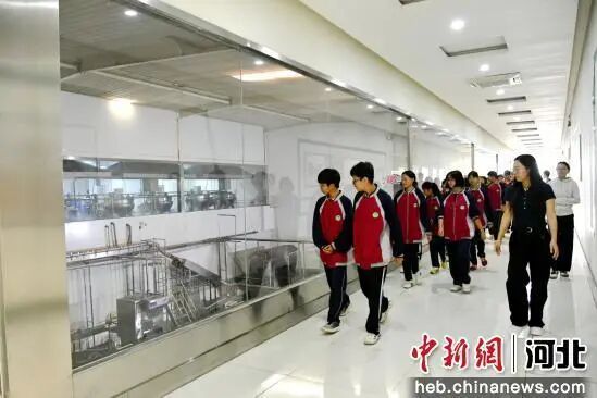 图为河北鸡泽县组织开展“庆丰收、颂祖国”主题研学活动,学生们参观当地辣椒企业,了解辣椒食品的现代化加工流程。 张信波 摄