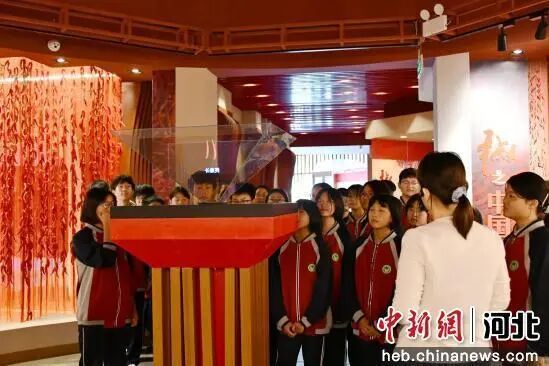 图为河北鸡泽县组织开展“庆丰收、颂祖国”主题研学活动,学生们在该县辣椒博物馆内聆听讲解,了解辣椒品种与文化内涵。 张信波 摄