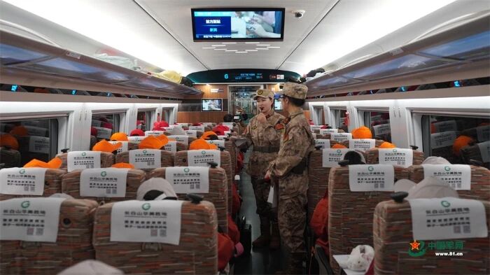 “列车正在通过的这片区域,就是当年杨靖宇将军率领将士战斗过的地方,你们走过的每一寸铁轨,都浸染着抗联将士们的热血……”在前往沈阳的高铁上,通化军分区的民兵红色讲解员为学生讲述抗联故事,组织学唱抗联歌曲。