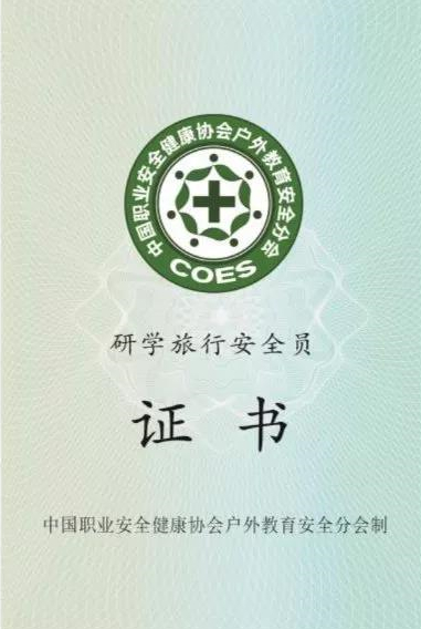 中国职业安全健康协会户外教育安全分会制证的《研学旅行安全员》证书